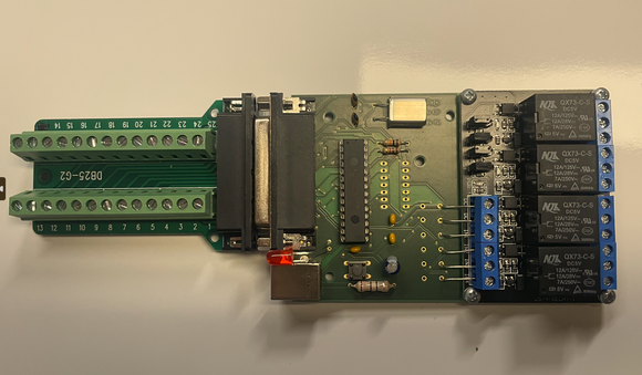 Die AnalogBox2 besteht aus einer USBKarte auf die eine Relaiskarte aufgeschraubt ist.